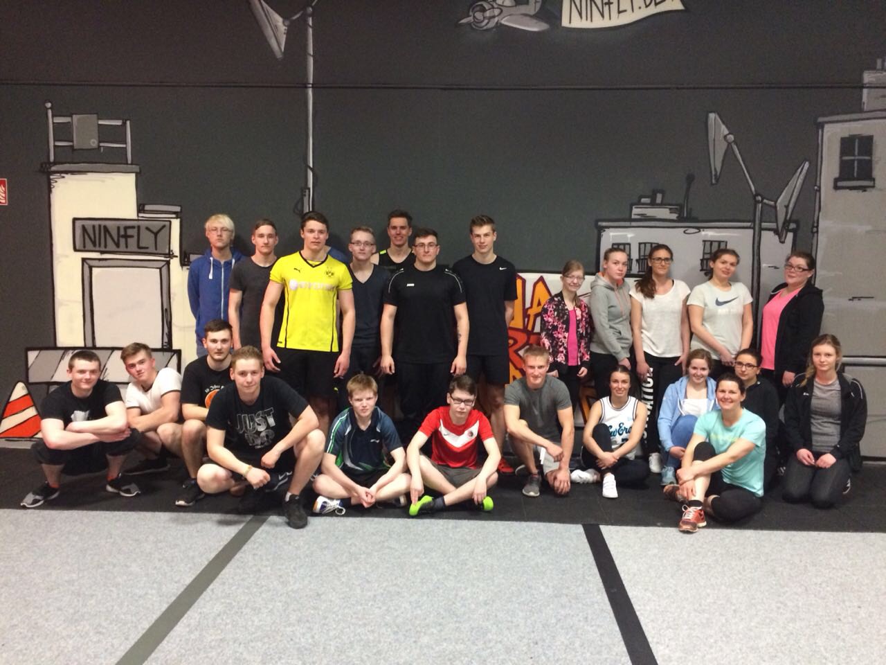 Wandertag in Münsters Trampolinhalle NINFLY mit den Klassen HTEO1 und REM1