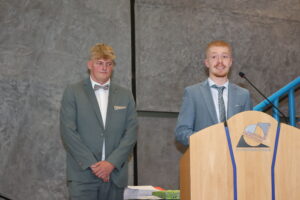 Auch die Klassensprecherinnen und Klassensprecher wandten sich an die Zuhörenden, um einige Erlebnisse der gemeinsam im Klassenverband verbrachten Zeit noch einmal Revue passieren zu lassen. Adelaida Viharev (GE13A) und Karina Schabhüser (GE13B) sowie Tino Schellhammer (GW13A) und David Kötter (GW13B) richteten ihren Dank an die anwesenden Eltern und Lehrkräfte für die gute Unterstützung und Begleitung auf dem Weg zum Abitur. Ein besonderer Gänsehautmoment stellte sich ein, als Julina Johnston das Lied „Old Friends“ von Jasmin Thompson sang. Mit ihrer ausdrucksvollen und sehr sicheren Stimme zog sie die Zuhörenden in ihren Bann und erntete für die herausragende Darbietung begeisterten Applaus. Daneben gestaltete Musiklehrerin Ulrike Eselgrim die Veranstaltung musikalisch mit zwei Beiträgen auf dem Klavier. Zum Abschluss wurden die besten Absolventinnen und Absolventen mit einem Buchpreis geehrt, die eine Abschlussnote mit einer Eins vor dem Komma erreicht hatten. Dies waren Lisa Erdmann und Stella Laagland (GW13B), Paula Overbeck, Leonie Voßmann, Adelaida Viharev und Kim Marleen Katter (GE13A). Mit einer Luftballonaktion klang die gelungene Veranstaltung aus, bevor sich alle am Abend zum Abiball in der Gaststätte Bütfering in Hoetmar wieder trafen.