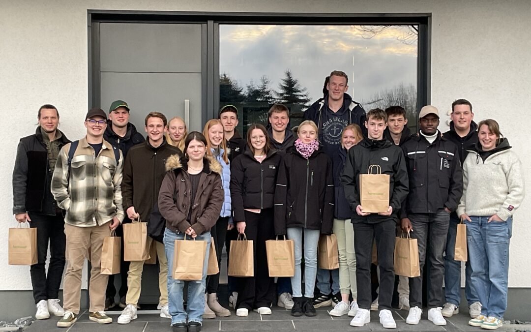Bild: Die Oberstufenklasse der Landwirte mit Klassenlehrer Johannes Jüngst (ganz li.).