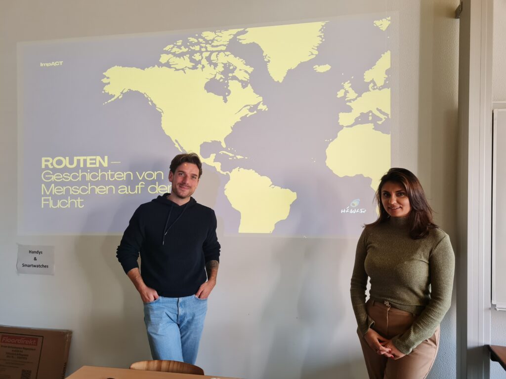 Projektmanager Filippo Steven Ferrara und Trina Mansoor von der Organisation HÁWAR führten den Workshop zum Thema Fluchtmigration durch.